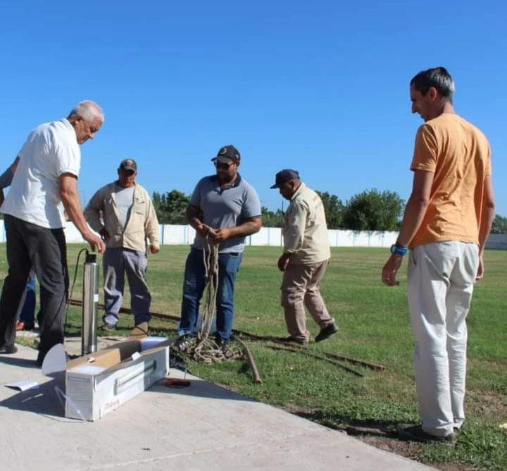 También se llevaron a cabo los trabajos complementarios de conexión de caños y luz, luego se realizó la prueba correspondiente y se reguló la salida de agua para un mejor aprovechamiento de la perforación ubicada en el lugar.
