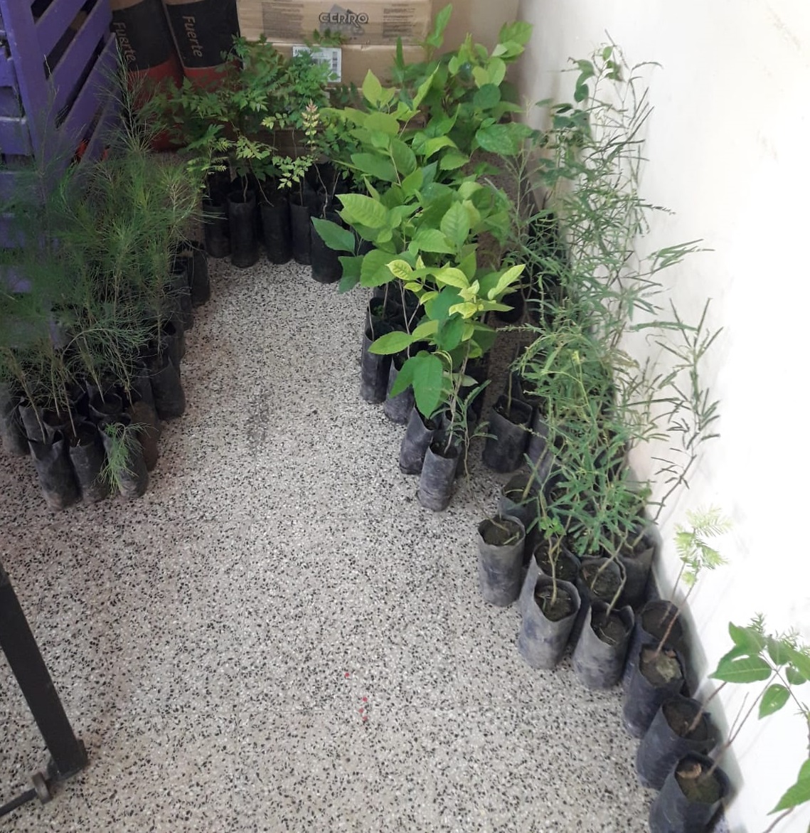 Algunos de los ejemplares de plantines que serán entregados a cambio de una pila en desuso