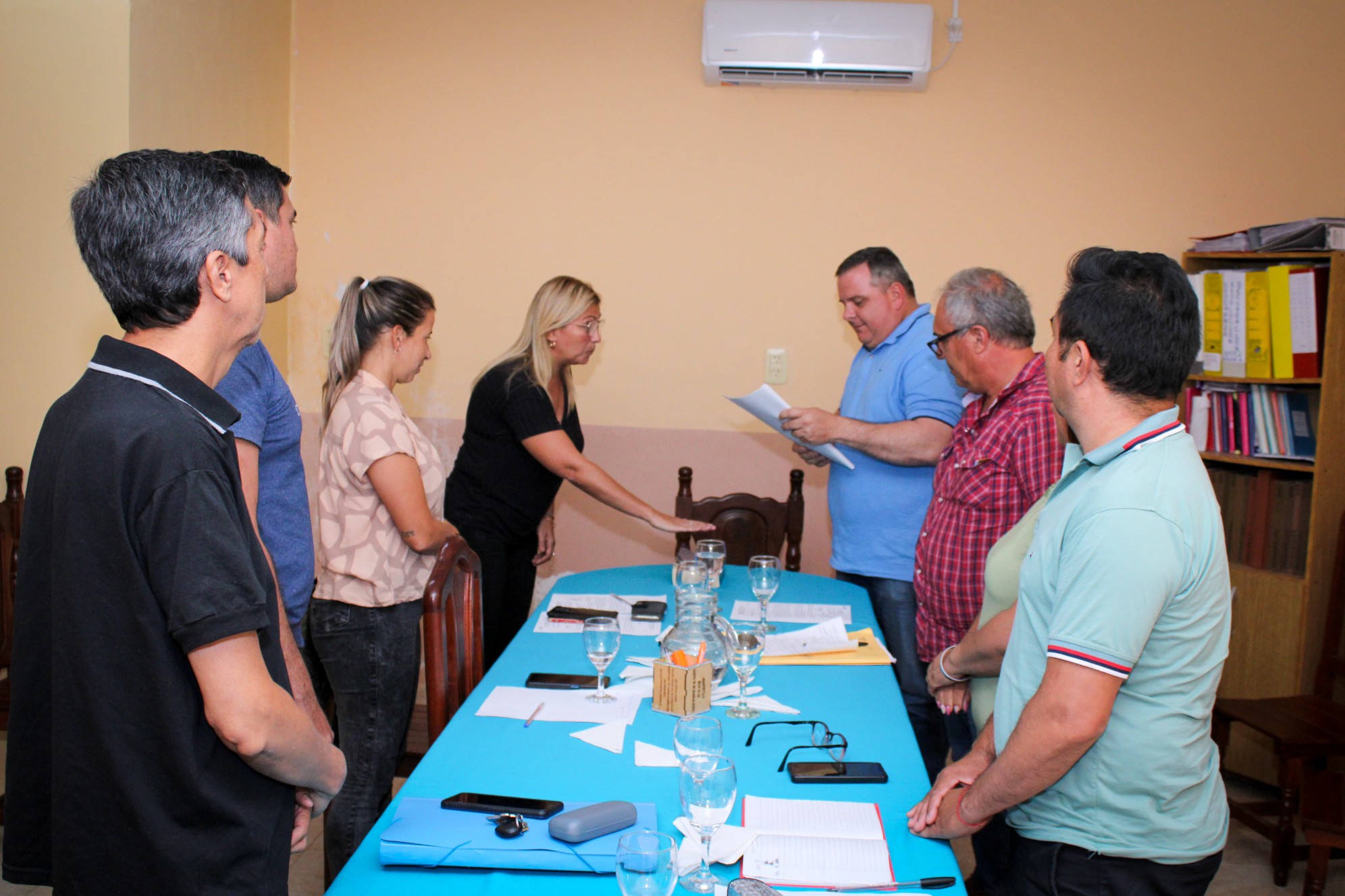Javier Abatte, presidente del concejo, tomando juramento a Lorena Alonso quien se desempeñará como secretaria del Concejo deliberante.