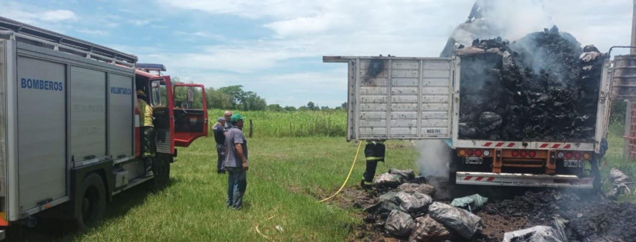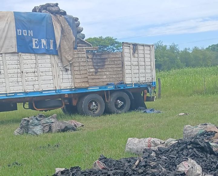 Durante el mediodía de hoy, jueves 1 de enero, se produjo un principio de incendio en un camión cargado con carbón vegetal, propiedad de la familia Maciel, en la localidad de Makallé.