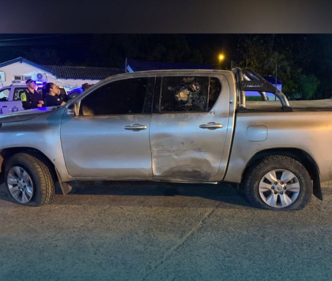 Durante la huida, uno de los neumáticos del rodado se reventó, lo que provocó que el conductor perdiera el control, abandonara la camioneta y se internara en la zona de monte, logrando escapar.