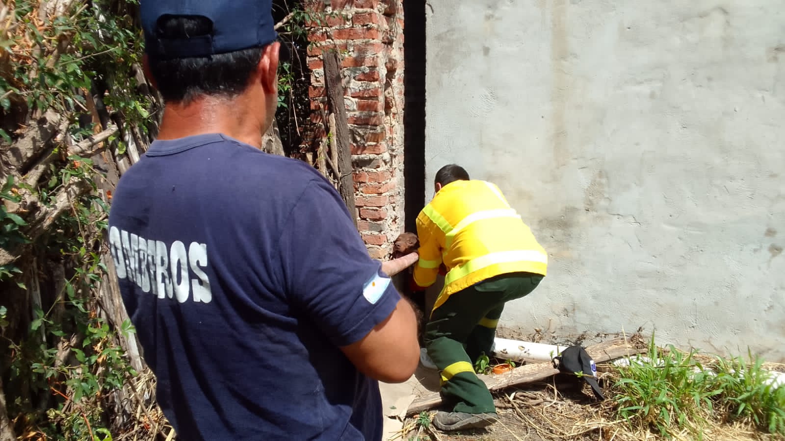 Este domingo 22 de enero, el cuartel de bomberos de Makallé recibió el llamado de una persona, la cual solicitaba la presencia del personal. Una vez en el lugar, tomaron conocimiento de que un animal canino estaría atrapado entre dos paredes linderas. Esta situación llevó a que los atentos voluntarios Santos Sanchez, Miguel Angel Barreto y Enzo Correa dispongan de un operativo con sogas para poder liberar la mencionada mascota que, sumado al tiempo que estuvo en esa situación, el calor y la falta de hidratación hiciera que este animalito no preste la debida colaboración con los bomberos.